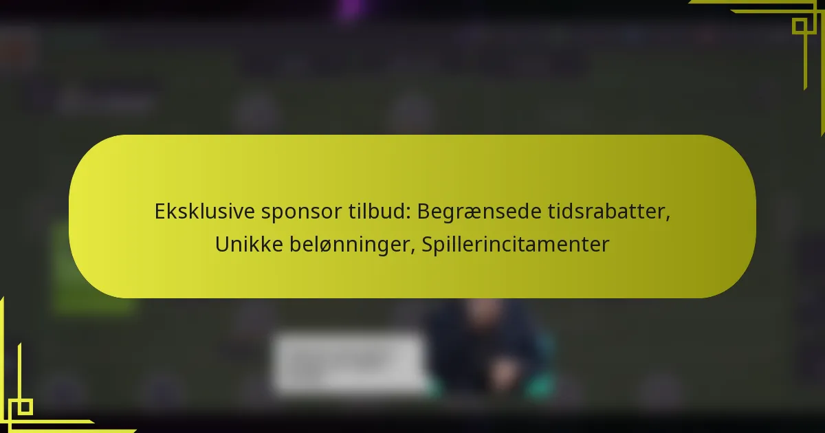 Eksklusive sponsor tilbud er kampagnetilbud skabt af sponsorer for at give spillerne unikke belønninger eller incitamenter. Det primære formål er at opmuntre til spillerens deltagelse og loyalitet, hvilket forbedrer den samlede spilleoplevelse. Disse tilbud kan variere meget, fra rabatter til særlige in-game genstande.